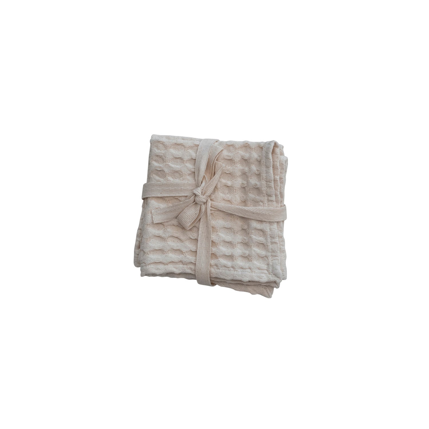 10-1/2" Square Stonewashed Cotton Waffle Weave Dish Cloths, Natural, Set of 3