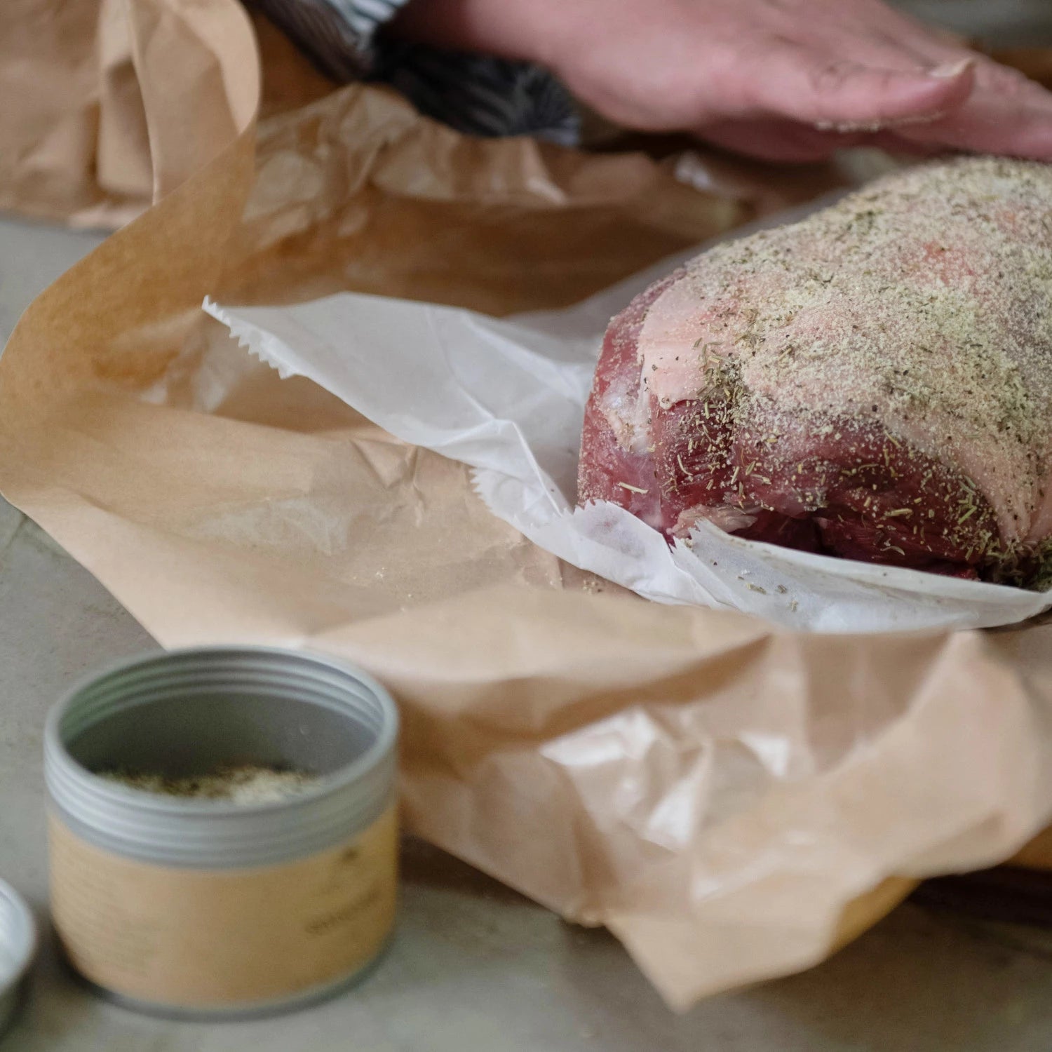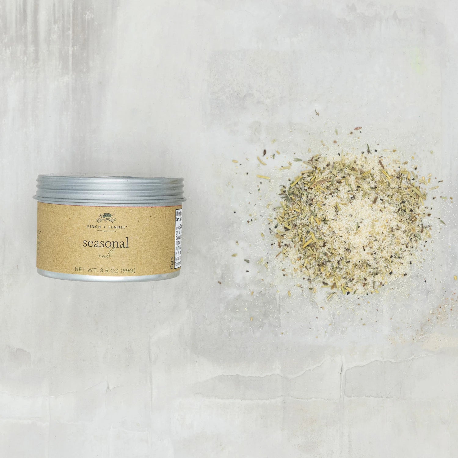 Our Seasonal Rub is the perfect blend for your holiday roast. Rosemary, thyme, cracked black pepper, sea salt, savory onion and garlic aromatics make up the robust selection of herbs + spices. Seasonal Rub is great on any roast beef, pork, lamb and even on fresh vegetables.