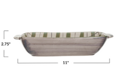 11"L x 6"W x 2-3/4"H 1 Quart Hand-Painted Stoneware Baking Dish w/ Plaid Pattern, Cream Color, Green & Grey Speckled