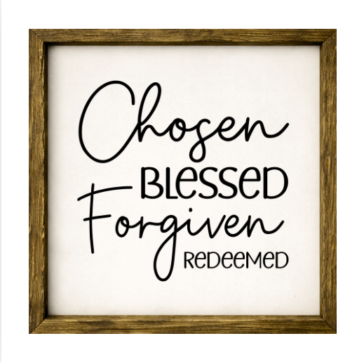 Chosen Blessed Forgiven Redeemed – Rustic Wood Framed Sign (Template) (Copy)