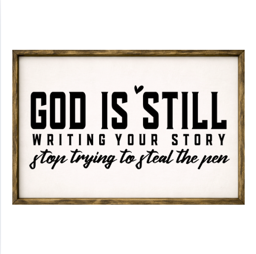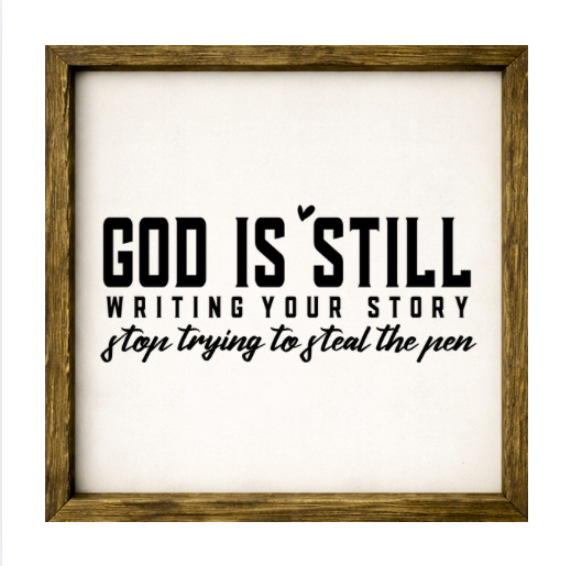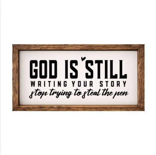 God Is Still Writing Your Story, Stop Trying To Steal The Pen – Rustic Wood Framed Sign