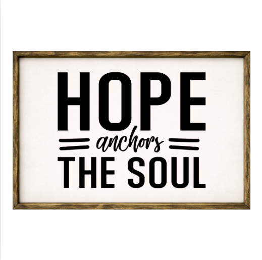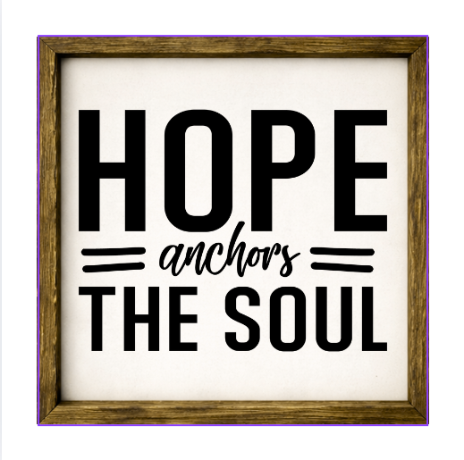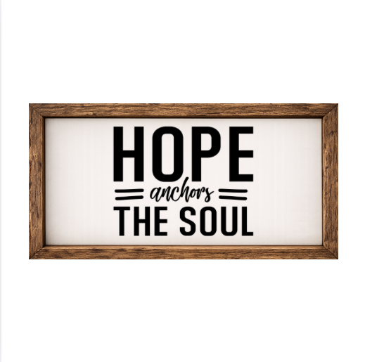Our Hope Anchors The Soul sign features elegant white lettering on a dark background framed in a handcrafted rustic wood box frame. The classic contrast of modern script with distressed wood makes this piece versatile for farmhouse, modern, or traditional décor styles. Each sign is built as a finished wood box, giving it depth, durability, and a high-end boutique feel. Designed to be displayed effortlessly—hang it directly from the frame or let it stand freely on a shelf, mantel, or table.