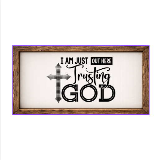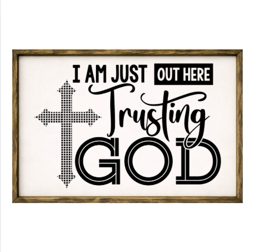 Our I'm Just Out Here Trusting God sign features elegant white lettering on a dark background framed in a handcrafted rustic wood box frame. The classic contrast of modern script with distressed wood makes this piece versatile for farmhouse, modern, or traditional décor styles. Each sign is built as a finished wood box, giving it depth, durability, and a high-end boutique feel. Designed to be displayed effortlessly—hang it directly from the frame or let it stand freely on a shelf, mantel, or table.