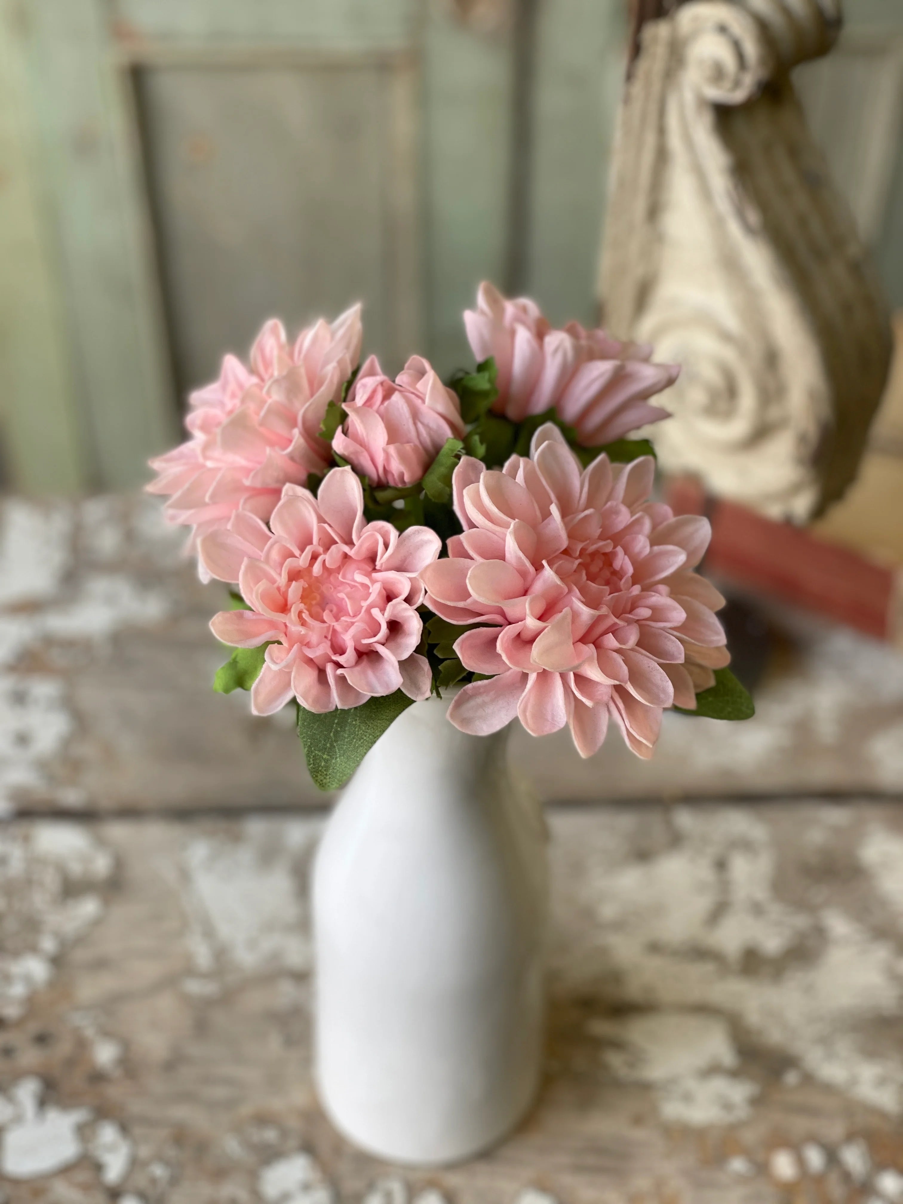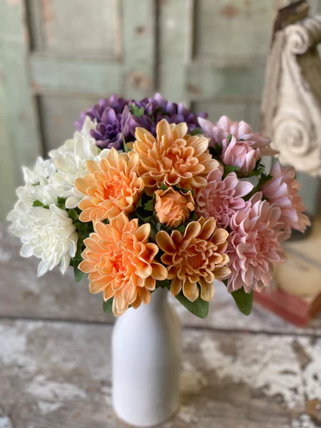 A showy bouquet of real-touch blooms bound with a raffia tie. Each bundle contains five stems. Available in four colors, each sold separately.