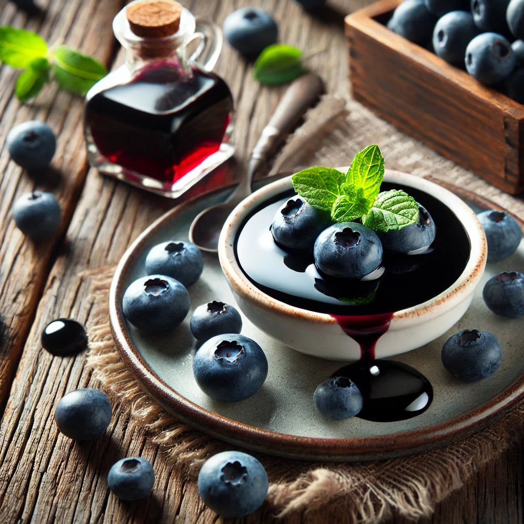 - Made with aged balsamic vinegar and natural blueberry essence.
