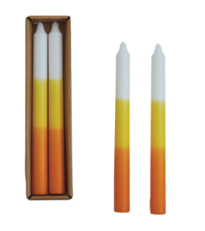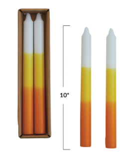 10"H Unscented Taper Candles in Box, White, Yellow & Orange Color, Set of 2 (Approximate Burn Time 7 Hours)