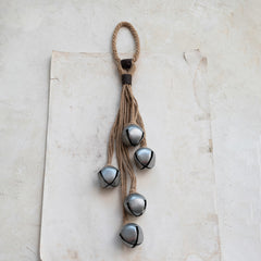 27"H Jute Rope Door Hanger w/ 5 Jingle Bells, Silver Finish