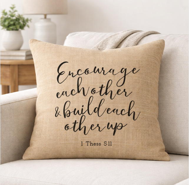 Encourage Each Other and Lift Each Other Up – Faith-Inspired Linen Throw Pillow (Copy)