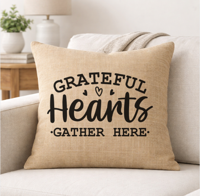 Bring faith and comfort into your home with our Grateful Hearts Gather Here linen throw pillow. Designed with a soft neutral tone and bold cross-centered typography, this pillow adds meaningful style to sofas, chairs, beds, and reading nooks.
