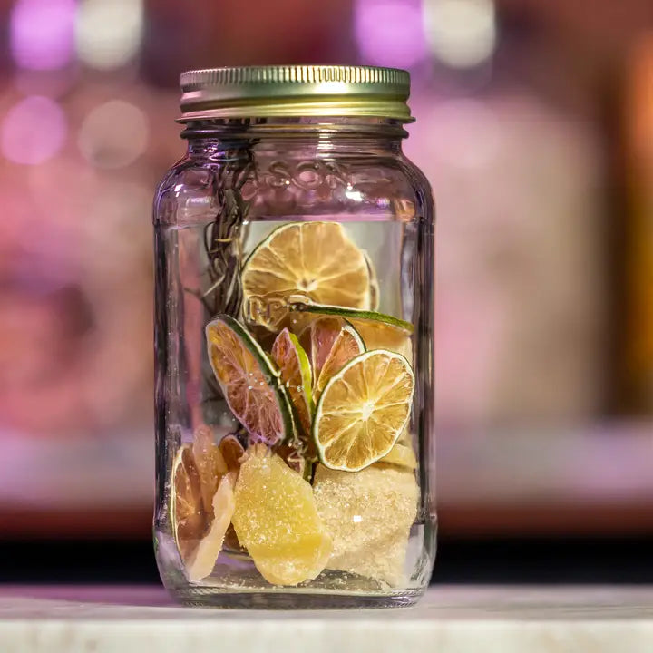 Add up to 24 ounces of your favorite spirits, refrigerate and let the infusion process make the best drink you've ever tasted! Shake or stir, strain for a smooth experience. Drink over ice (big cubes make it fancy) or straight up. Each and every Dirty Habit jar is hand packed and comes approximately 3/4 full with small batch dried fruit and herbs. Settling does occur in shipping.