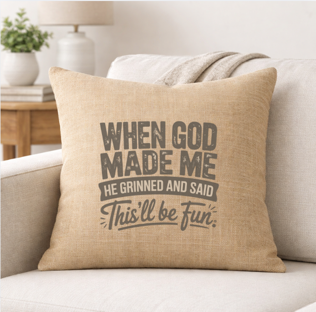 Bring faith and comfort into your home with our When God Made Me linen throw pillow. Designed with a soft neutral tone and bold cross-centered typography, this pillow adds meaningful style to sofas, chairs, beds, and reading nooks.