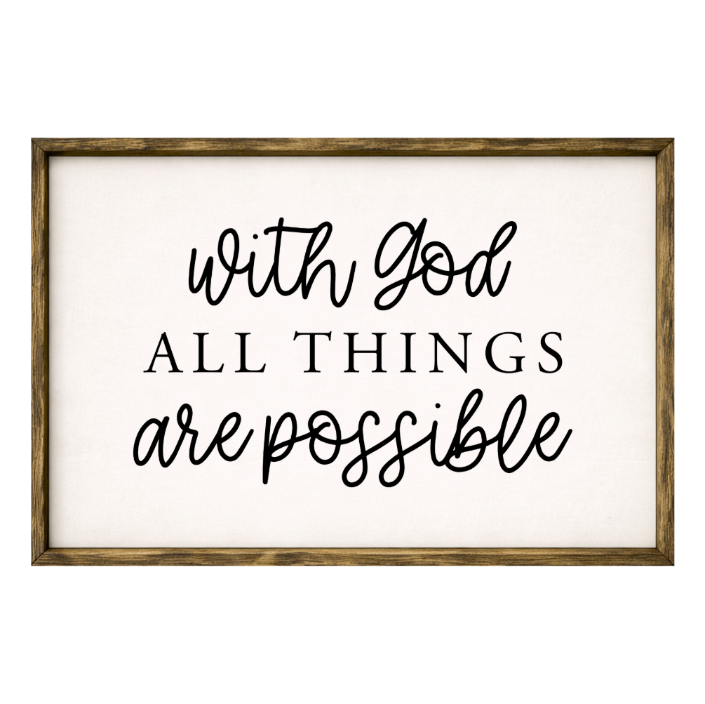 With God All Things Are Possible – Rustic Wood Framed Sign